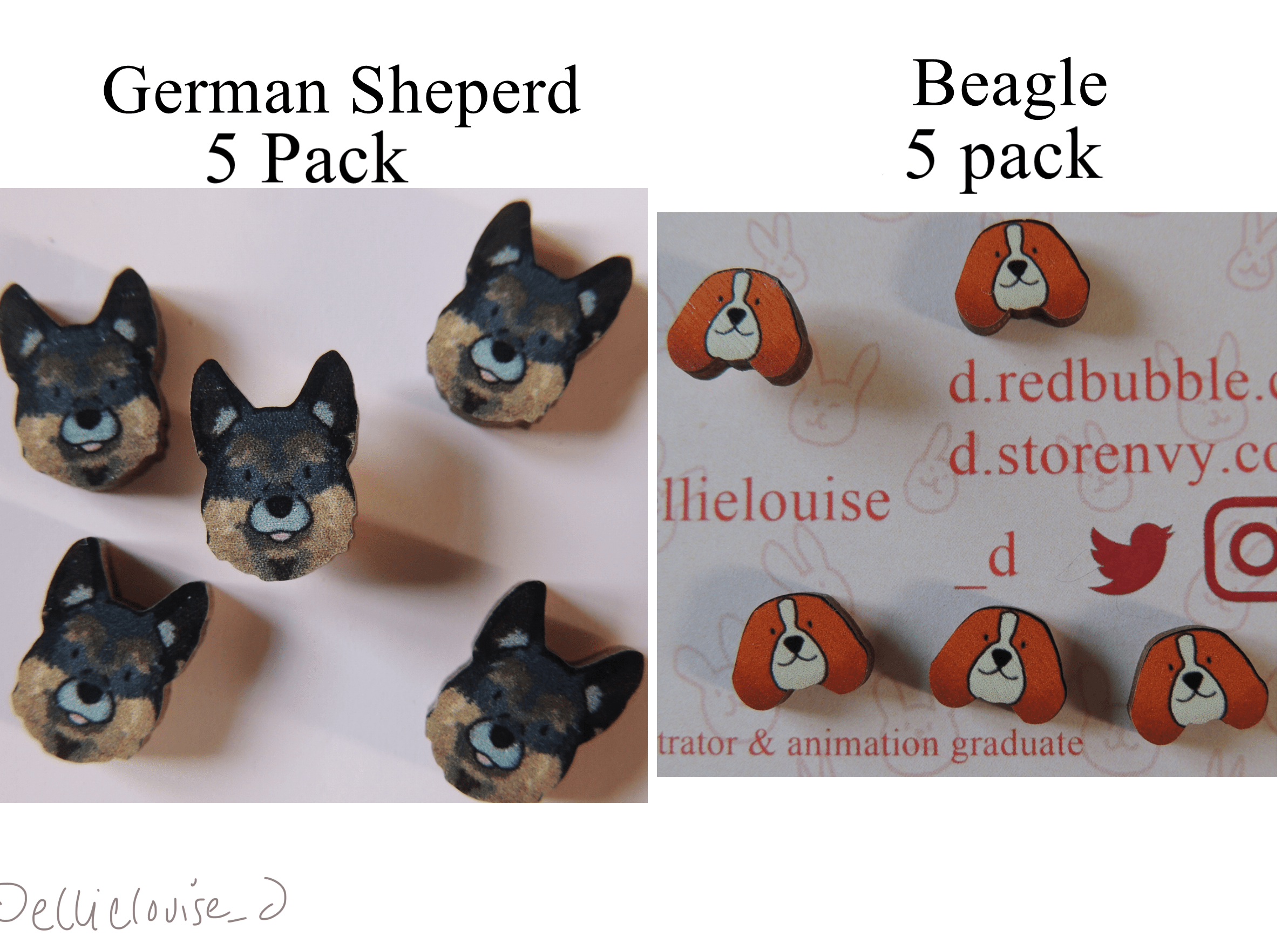 earring pair- on stainless steel studs, just put the dog breed(s) you want in the order notes or email (2 wooden charms per order)